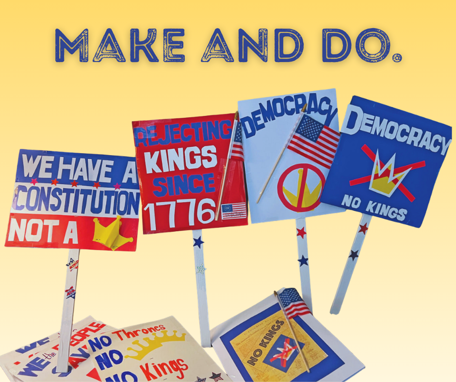 Join us to make posters to carry at the third No Kings protest on Saturday, March 28th.